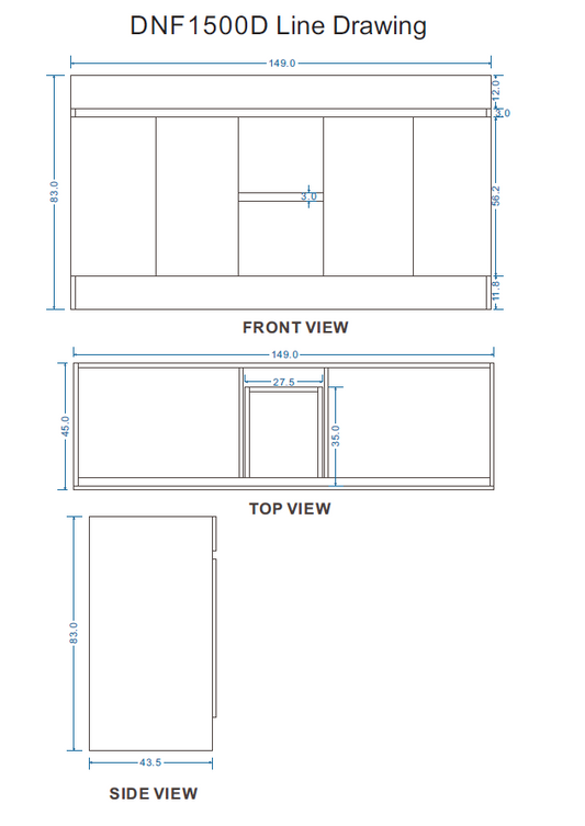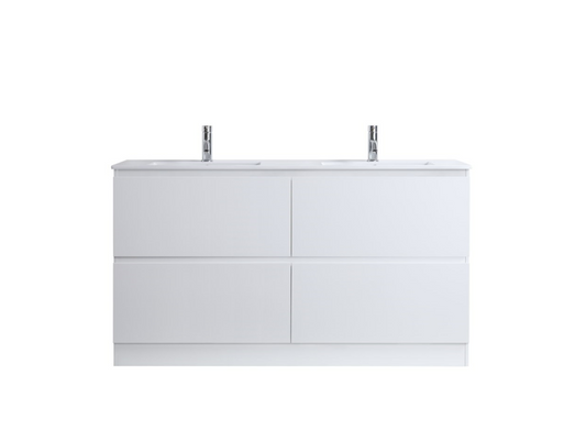 DNF FloorStanding Plywood DOUBLE DRAWERS VANITY GLOSSY WHITE PAINT FINISHED 1500MM DOUBLE BASIN