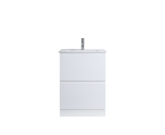 DNF FloorStanding Plywood DOUBLE DRAWERS VANITY GLOSSY WHITE PAINT FINISHED 600MM
