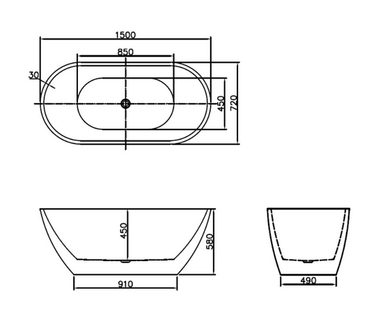 Elementi MARZO FREESTANDING BATH 1500 X 720 X 580MM WHITE