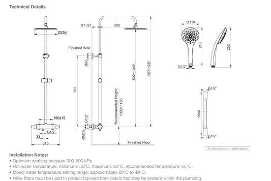 KOHLER Aleo Thermostatic Syetem Shower Column Set