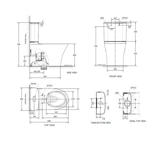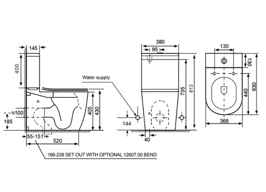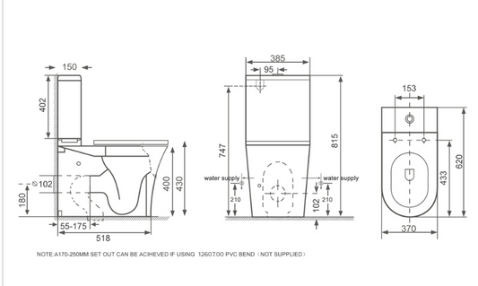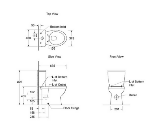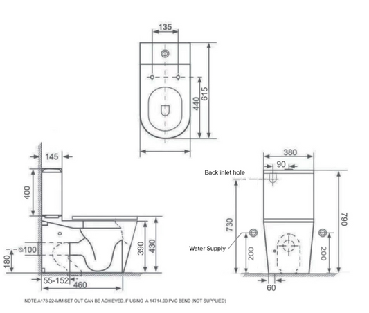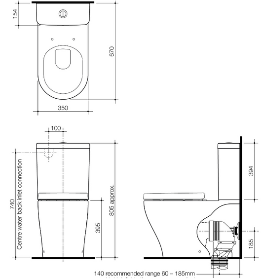 ELEMENTI L-SPEC CC Back To Wall TOILET SUITE TOP/BOTTOM INLET
