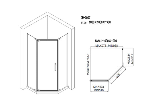 CANCEL ORDER! DN-7007 SHOWER GLASS DIAMOND SWING DOOR 1900MM HIGH
