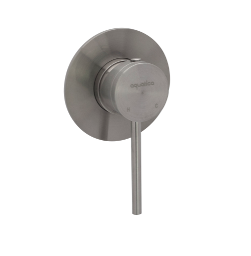This is a brass shower mixer with a brushed finish and matching metal handle incorporating a quality 40mm European ceramic cartridge. It has a wider mixing action (which makes it easier to control the mix) and includes flow control as well as an anti-scald device.