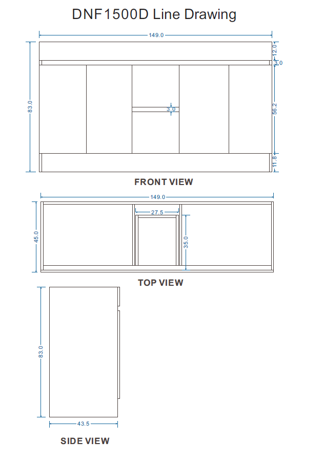 - CABINET SIZE: 1500MM(WIDE) X 460MM(DEPTH) X 780MM(HEIGHT)